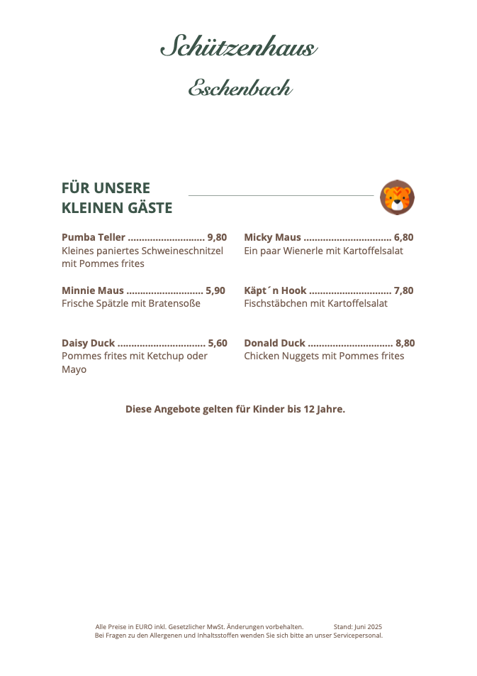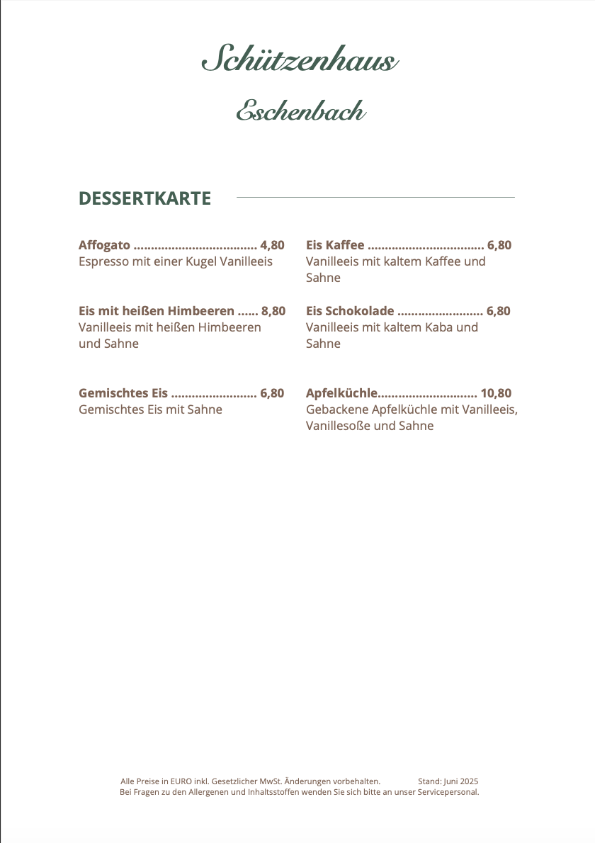 Unsere Speisekarte